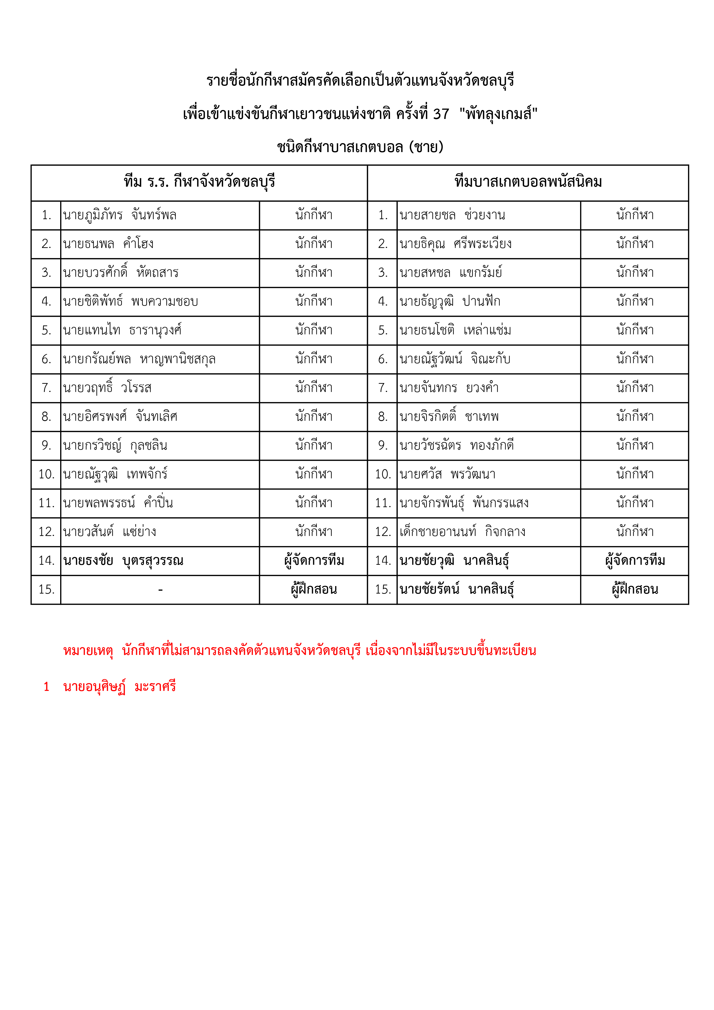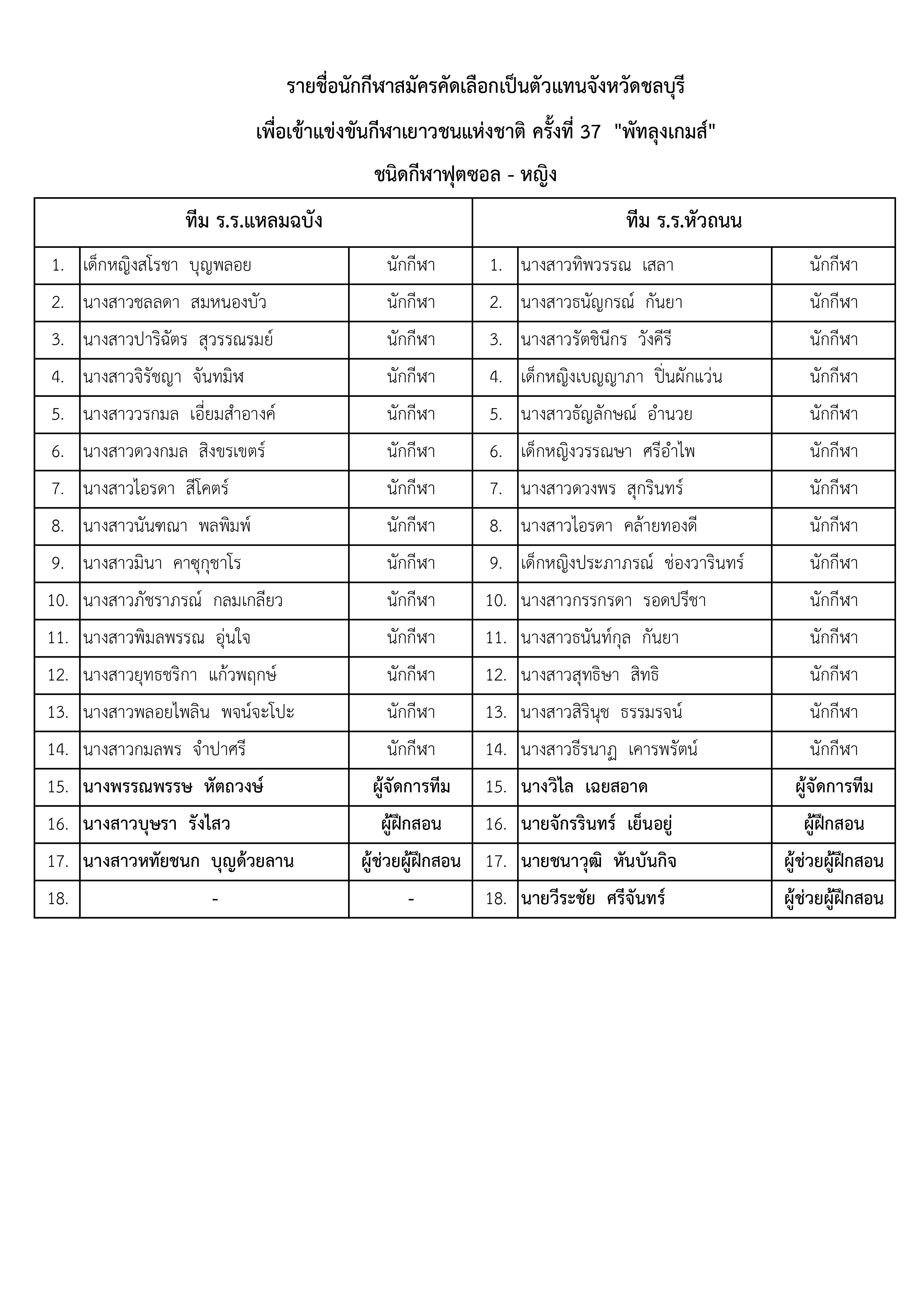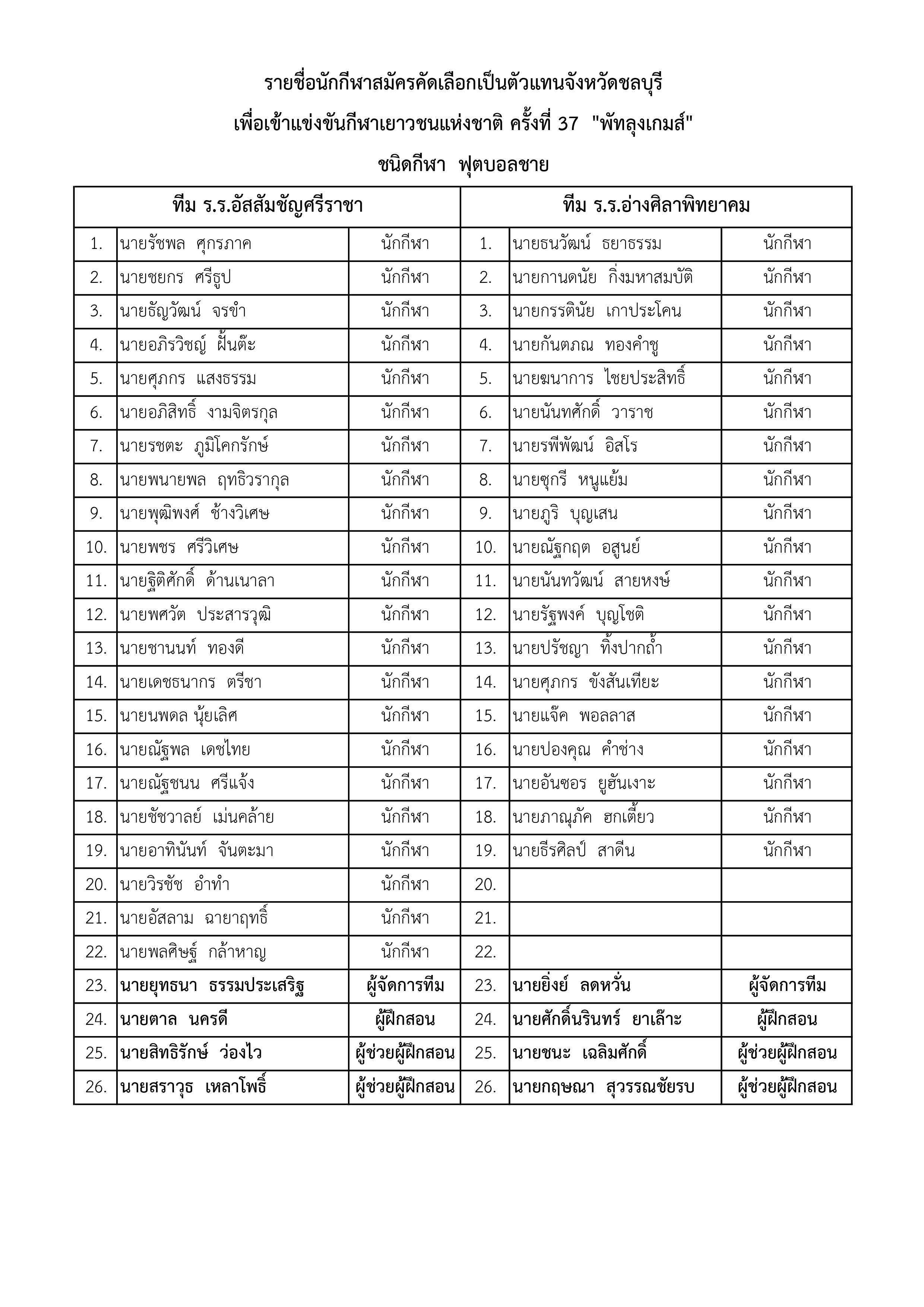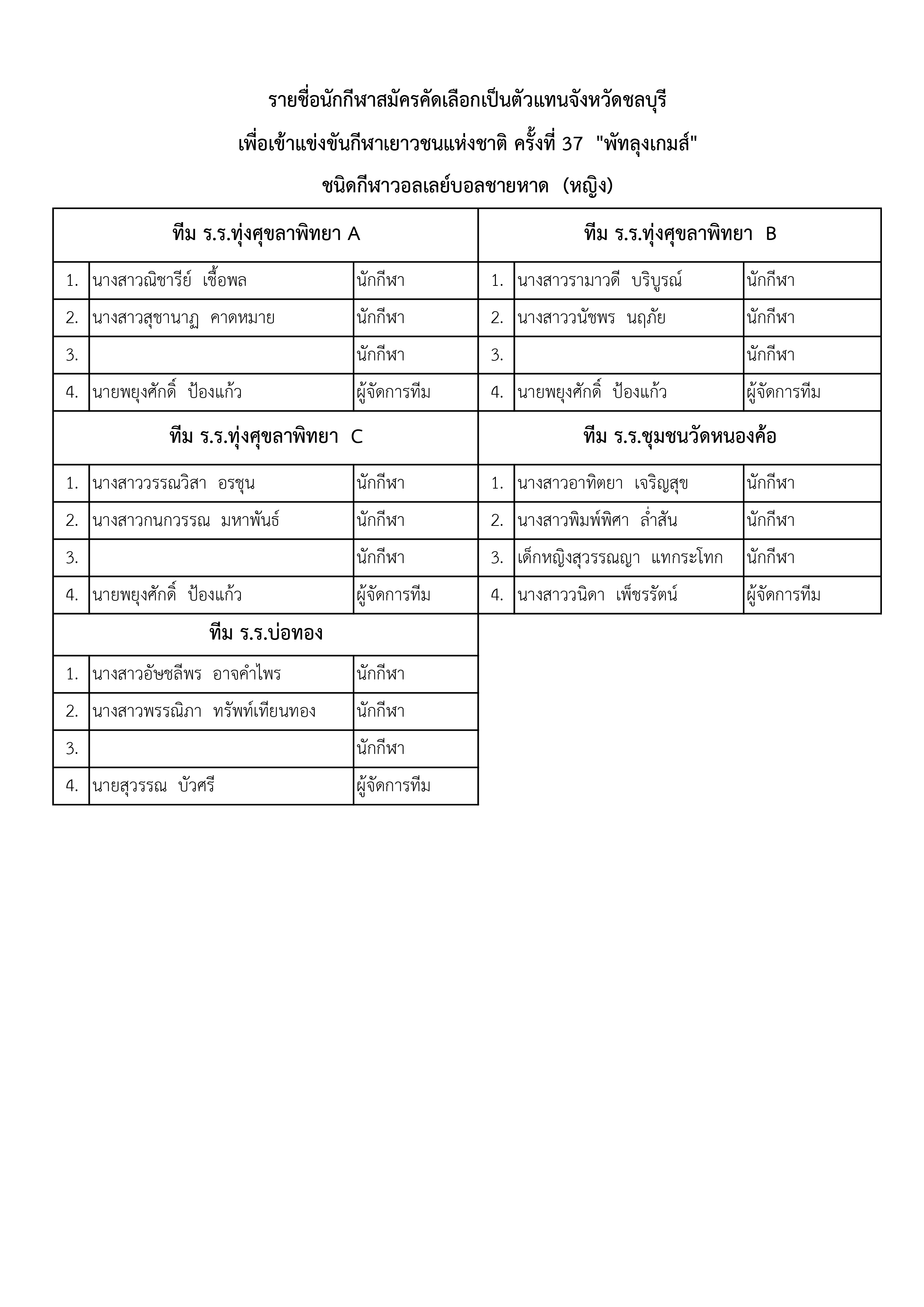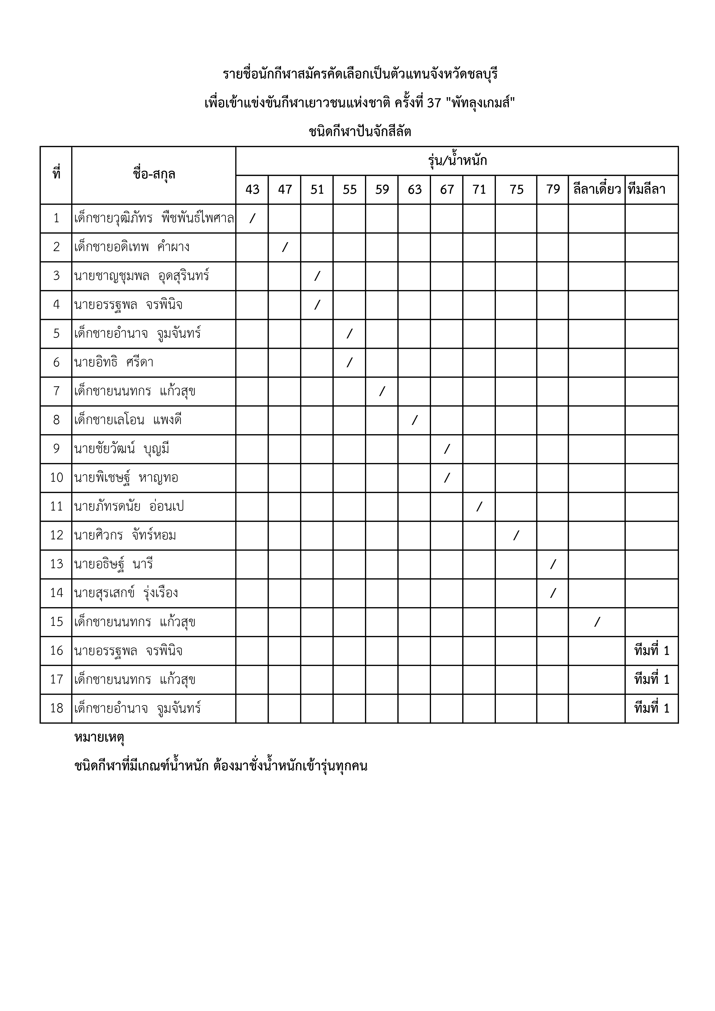 กำหนดการคัดเลือกนักกีฬาตัวแทนจังหวัดชลบุรี เพื่อเข้าแข่งขันกีฬาเยาวชนแห่งชาติ ครั้งที่ 37 "พัทลุงเกมส์" ระหว่างวันที่ 12-20 ก.พ. 65